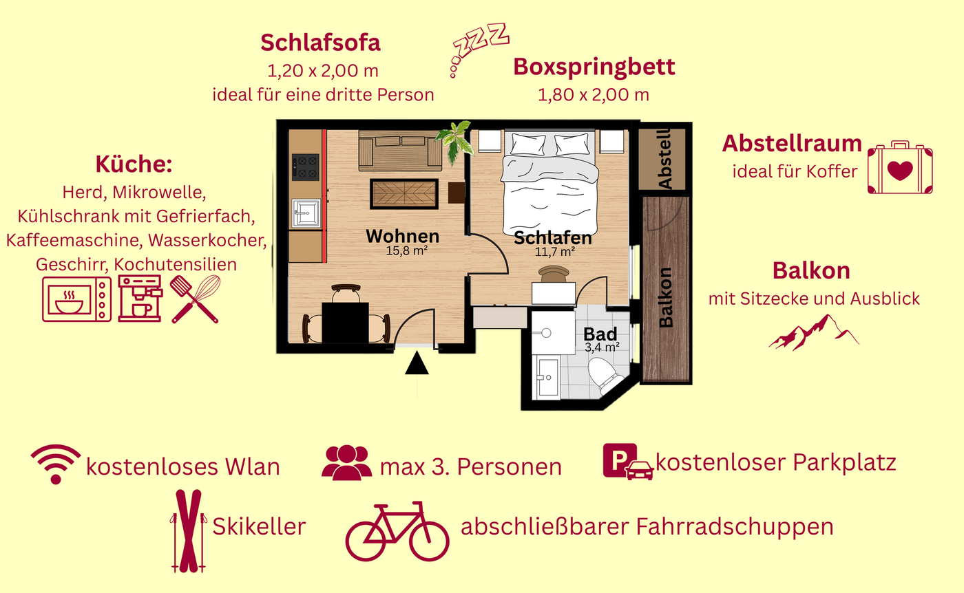 Unsere Ferienwohnung bietet Platz für bis zu drei Personen.